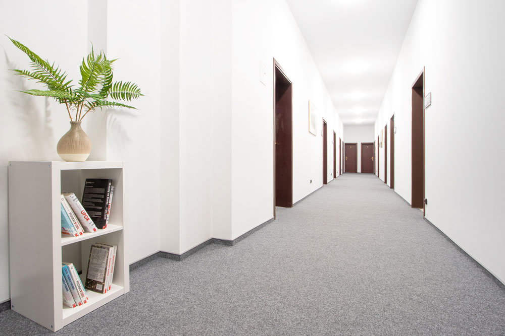 Korytarz świeżo po remoncie. Wymieniona została podłoga, odmalowane ściany oraz wymienione oświetlenie. Na każdym piętrze biurowca znajduje się mała biblioteka (największa na II piętrze). Do dyspozycji najemców są książki z wielu różnych dziedzin: od biznesu przez odżywianie aż po sport.